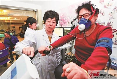 評估會結(jié)束后,陳偉又匆匆走進心肺康復(fù)訓(xùn)練中心,為一位患有高血壓和心臟病的病人做心肺運動實驗,開出個性化運動“處方”。