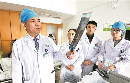 ◎文/圖 徐州日?qǐng)?bào)全媒體記者 陸銘 通訊員 孫海芹 責(zé)字意求取,任字意擔(dān)當(dāng)。責(zé)任就是分內(nèi)應(yīng)做的事。 人人的肩頭都負(fù)有責(zé)任和擔(dān)當(dāng),孟箭也不例外。作為徐州市中心醫(yī)院大外科黨總支書記、口腔科主任、主任醫(yī)師,行醫(yī)三十載的孟箭和他的市中心醫(yī)院所有同仁有著一個(gè)共同的責(zé)任,那就是肩負(fù)責(zé)任,秉承大愛,為患者的健康擔(dān)當(dāng)。 2018年8月18日,在首個(gè)中國(guó)醫(yī)師節(jié)到來之際,第四屆江蘇省“十大醫(yī)德標(biāo)兵”揭曉,孟箭榜上有名。作為我市唯一一名獲此殊榮的醫(yī)生,孟箭把“分內(nèi)應(yīng)做的事”做成陽(yáng)光下最美的綻放。 責(zé)任,是不止步的登攀 孟箭從醫(yī)的初心很簡(jiǎn)單,那就是不想讓親戚朋友看病那么難。1989年,孟箭以南京醫(yī)科大優(yōu)秀學(xué)生和優(yōu)秀大學(xué)生黨員的身份畢業(yè)并分配到徐州市四院口腔科。 彼時(shí),口腔科也沒有單獨(dú)病區(qū),和眼科、耳鼻喉科病區(qū)在一起,大約有10張病床。在綜合醫(yī)院里,口腔科就是一個(gè)“錦上添花”的科室,類似口腔保健,“那時(shí)候病人少,大手術(shù)很少開展,只能應(yīng)付日常病癥”。 小科室小醫(yī)生。好在小醫(yī)生有大志向。畢業(yè)時(shí)老師“多琢磨事,要把事做好”的教導(dǎo)猶在耳邊。“醫(yī)務(wù)工作者的‘事’是什么?就是不斷提高醫(yī)療水平,造福更多患者”。 因?yàn)樾闹杏羞@件“事”要琢磨,所以,“小醫(yī)生”孟箭就敢做“大”手術(shù)。 一名來自邳縣農(nóng)村的嬰兒,不足一月,口腔上腭長(zhǎng)了個(gè)怪物——畸胎瘤,還伴有腭裂。當(dāng)晚“小醫(yī)生”孟箭一個(gè)人坐在不會(huì)講話的嬰兒身旁,一邊觀察,一邊思考,過濾著所學(xué)的知識(shí)和教授們的囑咐,苦思冥想,怎樣才能延續(xù)這名小患者的生命?怎樣才能還他一個(gè)美麗的面容?次日,孟箭冒著風(fēng)險(xiǎn)順利地為小患者切除了畸胎瘤。4年后小患者的家長(zhǎng)又將孩子帶來,指名要孟箭醫(yī)生為其修補(bǔ)腭裂,腭裂修補(bǔ)手術(shù)依然很成功,連一點(diǎn)輕微痕跡都不易察覺,患者家長(zhǎng)十分感激地說:孟醫(yī)生您就是我孩子的再生父母呀! 因?yàn)樾闹杏羞@件“事”要琢磨,孟箭堅(jiān)持終身學(xué)習(xí)。 “小醫(yī)生”孟箭在工作幾年后發(fā)現(xiàn)大學(xué)里學(xué)的知識(shí)不夠用了,于是主動(dòng)申請(qǐng)到北京大學(xué)口腔醫(yī)院學(xué)習(xí),越學(xué)越發(fā)現(xiàn)“知識(shí)面太窄、新技術(shù)掌握太少”。他邊進(jìn)修邊準(zhǔn)備研究生入學(xué)考試,而且“要考就考國(guó)內(nèi)一流的、權(quán)威的大學(xué)”。功夫不負(fù)有心人,孟箭以當(dāng)年第一名的成績(jī)考上有“國(guó)內(nèi)口腔外科NO.1”之稱的上海交大九院研究生,不僅見到了極其崇拜的口腔界泰斗邱蔚六院士,還跟著老人查房上專家門診。3年研究生學(xué)習(xí),孟箭不僅出色完成了國(guó)家自然科學(xué)基金課題,技術(shù)水平明顯提高,還結(jié)識(shí)了國(guó)內(nèi)、國(guó)際的許多知名專家,為日后市中心醫(yī)院口腔科強(qiáng)勢(shì)發(fā)展積攢了無價(jià)資源,為科室開展疑難病癥遠(yuǎn)程會(huì)診提供了高端平臺(tái)。 現(xiàn)在孟箭已經(jīng)成長(zhǎng)為了“大醫(yī)生”。他榮獲省中青年有突出貢獻(xiàn)專家、省“333”人才、省六大高峰人才、衛(wèi)生拔尖人才、徐州市首屆青年科技工作者等稱號(hào)。他完成或主持國(guó)家自然科學(xué)基金、省科技廳臨床醫(yī)學(xué)專項(xiàng)、省六大高峰人才等課題10項(xiàng),在口腔頜面部腫瘤的診療方面,獲得淮海科學(xué)技術(shù)獎(jiǎng)4項(xiàng)、上海市科技進(jìn)步獎(jiǎng)三等獎(jiǎng)1項(xiàng)及多項(xiàng)徐州市科技進(jìn)步獎(jiǎng),主力參與完成的“超聲熱化療治療口腔頜面-頭頸部惡性腫瘤”榮獲2013年中華醫(yī)學(xué)科技獎(jiǎng)三等獎(jiǎng)和2016年中國(guó)抗癌協(xié)會(huì)二等獎(jiǎng)。2009年開始進(jìn)行綜合治療口腔腫瘤和修復(fù)重建的相關(guān)研究,受到國(guó)內(nèi)外同行的關(guān)注,已發(fā)表相關(guān)論文15篇。先后獲得江蘇省衛(wèi)生廳醫(yī)學(xué)新技術(shù)引進(jìn)獎(jiǎng)一等獎(jiǎng)1項(xiàng)、二等獎(jiǎng)5項(xiàng)及多項(xiàng)徐州市醫(yī)學(xué)新技術(shù)引進(jìn)獎(jiǎng)。作為學(xué)科帶頭人,他主持帶領(lǐng)口腔科創(chuàng)建成為江蘇省首家綜合醫(yī)院省級(jí)臨床重點(diǎn)?瓶谇豢,2015年創(chuàng)建成為國(guó)家衛(wèi)計(jì)委口腔住院醫(yī)師規(guī)范化培訓(xùn)基地(口腔7個(gè)專業(yè)居全省首位),學(xué)科團(tuán)隊(duì)近年連續(xù)居中國(guó)醫(yī)院科技影響力排行榜(口腔醫(yī)學(xué))前列。身為徐州市口腔全科專委會(huì)主任委員,孟箭更加注重涉獵更高的平臺(tái)、更寬的視野、更遠(yuǎn)的謀劃。而在實(shí)際工作中,每日的手術(shù)或教學(xué)查房前,他總是會(huì)提前翻閱權(quán)威的教科書、最新的文獻(xiàn)資料,以更好地充實(shí)即將到來的查房?jī)?nèi)容或手術(shù)技巧。向書本學(xué)、向病例學(xué)、向同行學(xué),是謙虛好學(xué)的孟箭一直在琢磨的事。 責(zé)