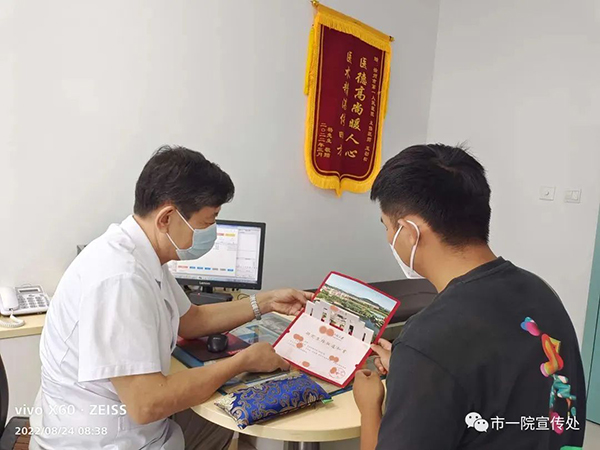 8月29日上午,江蘇省徐州市第一人民醫(yī)院男科專家王勁松在門診收到一面特殊的“錦旗”——患者小錢(化名)的碩士研究生錄取通知書。王主任手里捧著“錦旗”,心里既十分激動,又為患者病愈后走出迷茫而學(xué)有所成感到無比的欣慰。就讓我們一起聆聽這一面特殊“錦旗”背后的故事吧!