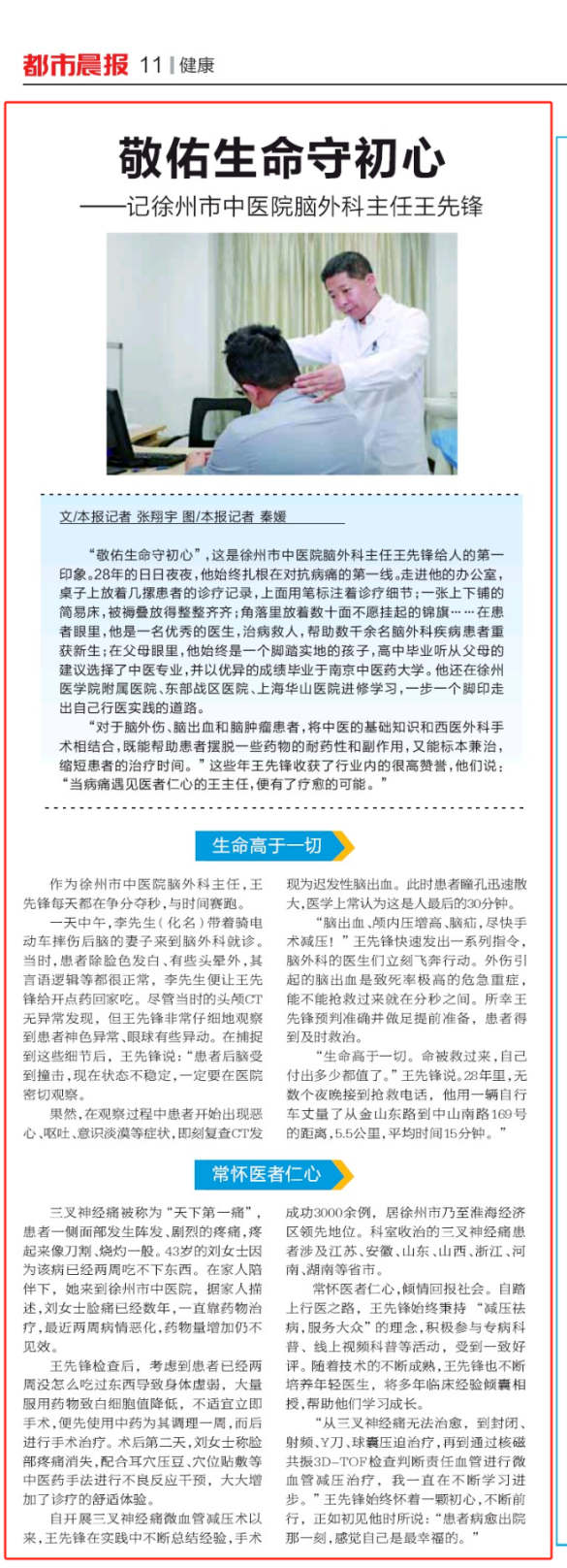 名醫(yī)訪談┃敬佑生命守初心——記徐州市中醫(yī)院腦外科主任王先鋒