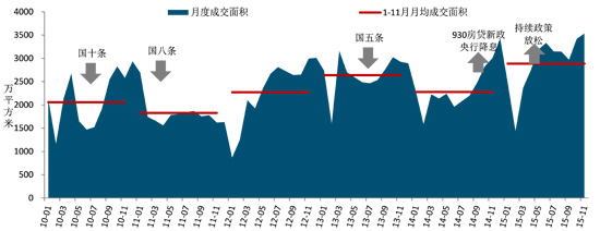 圖:2010-2015年11月50個代表城市月度成交量走勢