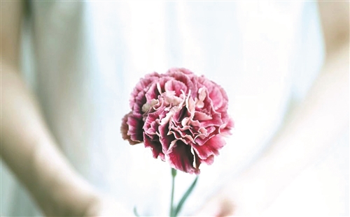 風(fēng)吹著捧著康乃馨的手,笑瞇瞇把花遞給母親。