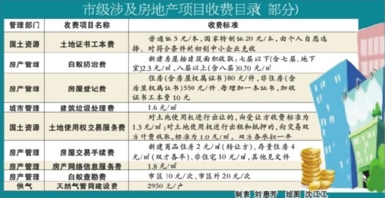 記者注意到,這一收費(fèi)目錄主要涉及我市房地產(chǎn)各種收費(fèi)項(xiàng)目,如國(guó)土資源部門收取的土地登記費(fèi)、土地證書工本費(fèi)、耕地開墾費(fèi)等;城鄉(xiāng)建設(shè)部門收取的城市基礎(chǔ)設(shè)施配套費(fèi)、城市道路占用挖掘費(fèi)等;房產(chǎn)管理的白蟻防治費(fèi)、房屋登記費(fèi)等;其余還有涉及氣象部門、民防部門、供電、供水等多項(xiàng)收費(fèi)標(biāo)準(zhǔn)。