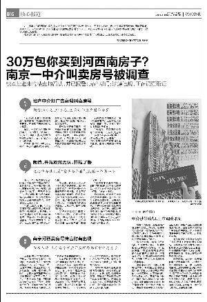 只要花18萬或者30萬,就能保證買到河西南部樓盤的房子?昨天,南京一家房產(chǎn)中介公開打出賣房號的廣告,引發(fā)房產(chǎn)部門的介入調(diào)查。南京房產(chǎn)部門昨天調(diào)查認定涉事中介已經(jīng)違規(guī),并作出處罰決定:無限期取消網(wǎng)上簽約資格,罰款3萬元。
