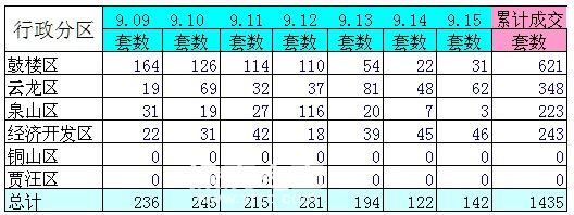 截止到15日,9月上半月徐州商品房共實(shí)現(xiàn)成交2589套,相比8月同期2849套下跌9.1%,與2012年同期1239套相比增漲109%。其中,市區(qū)住宅銷(xiāo)量為1491套,環(huán)比8月下降28.1%,同比2012年增漲32.3%。