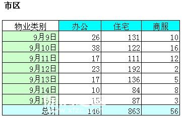 上周(9月9日—15日),市區(qū)商品房、住宅、辦公及商業(yè)用房的成交量全線(xiàn)出現(xiàn)上升趨勢(shì)。據(jù)徐房之窗數(shù)據(jù)中心統(tǒng)計(jì),上周徐州市區(qū)(不包括賈汪區(qū)、銅山區(qū))商品房成交1435套,環(huán)比之前一周增加335套。其中住宅成交863套,相較前一周的605套增加了258套;辦公用房成交146套,相較前一周的109套增加了37套;商業(yè)用房成交56套,相較前一周的38套增加了18套。