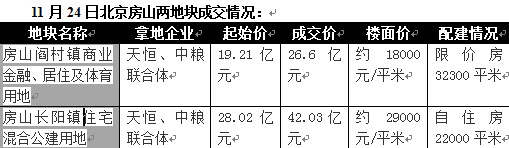 昨天,北京土地市場繼續(xù)上演房企搶地大戰(zhàn),經(jīng)過多輪競價,最終房山兩地塊全部被天恒中糧聯(lián)合體摘得,總價68.63億元。