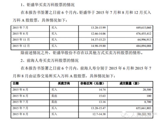 根據(jù)萬科企業(yè)詳式權(quán)益變動(dòng)報(bào)告書披露,本次權(quán)益變動(dòng)前,深圳市鉅盛華股份有限公司和一致行動(dòng)人前海人壽保險(xiǎn)股份有限公司合計(jì)持有萬科A股16.6億股,占萬科總股本的15.04%。