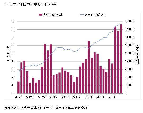 2015年在利好政策不斷出臺(tái)的背景下,上海樓市行情十分火爆。據(jù)第一太平戴維斯提供的數(shù)據(jù)顯示,2015年上海商品住宅成交量為1500萬平方米,較去年上漲53.8%;成交均價(jià)為每平方米32200元,較去年上漲18.3%,成交量則創(chuàng)下2010年以來近6年的新高,成交均價(jià)則再創(chuàng)歷史新高,并且邁入每平方米3萬元以上的時(shí)代。