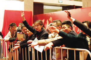 3月6日下午,綠城·東方雅園開盤儀式在博頓溫德姆酒店宴會廳隆重舉行,按照計(jì)劃,該項(xiàng)目首批將推出184套房源,包括洋房和高層。不少市民早上就來到了活動現(xiàn)場,下午開盤時(shí),現(xiàn)場已涌入上千人,很多市民沒有座位,只能站在大廳兩側(cè)的過道上。