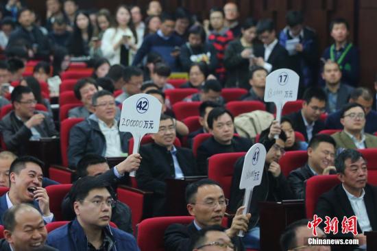 資料圖:南京拍賣會現(xiàn)場,房企競相舉牌。 中新社記者 泱波 攝