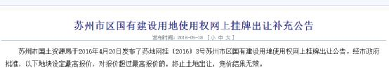 昨日晚間,蘇州市國土資源局發(fā)布公告,對4月20日掛出的10幅地塊設(shè)定最高報價,稱經(jīng)市政府批準(zhǔn),對開發(fā)商報價超過最高報價的,終止土地出讓,競價結(jié)果無效。