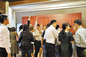 徐州蘇寧廣場空中立體商鋪一經(jīng)入市備受熱捧,本次開盤更是點燃了徐州塔尖階層的搶房激情。2016年5月27日,開盤活動還未開始,容納400人的現(xiàn)場早已坐無缺席。10時18分,隨著主持人宣布開盤選房環(huán)節(jié)正式開始,眾來賓便按照選房順序,緊張而有序的開始選房。由于本次認籌預(yù)約客戶,遠超房源供應(yīng)總量,現(xiàn)場氣氛十分緊張。
