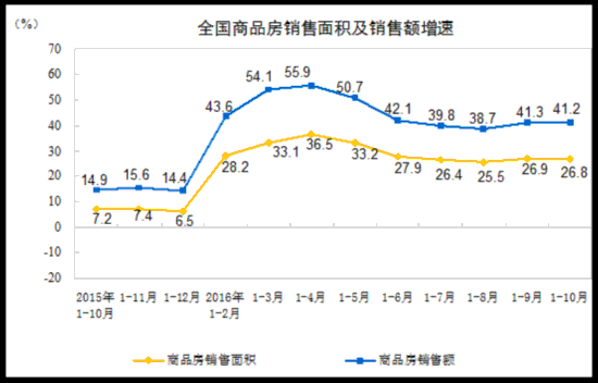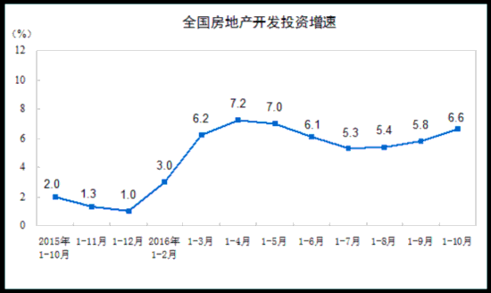 2016年1-10月份全國房地產(chǎn)開發(fā)投資和銷售情況