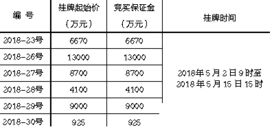三、掛牌起始價(jià)、競買保證金和開竣工履約保證金及掛牌時(shí)間: