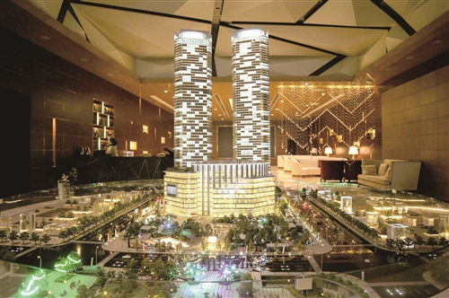 從彭城路進(jìn)入項(xiàng)目展廳,漆黑一片,只有一名保安在值守。打開(kāi)燈光,兩側(cè)墻壁上掛滿(mǎn)照片,內(nèi)側(cè)展廳燈光中璀璨的雨潤(rùn)廣場(chǎng)沙盤(pán)依然可見(jiàn)這座商業(yè)體的壯觀,該項(xiàng)目最初規(guī)劃是用地面積4.28萬(wàn)平方米,總建筑面積約52萬(wàn)平方米(商業(yè)酒店寫(xiě)字樓部分),總高度259米,將由雙塔樓、裙樓、城市休閑廣場(chǎng)組成,是集高檔購(gòu)物中心、五星級(jí)酒店、甲級(jí)寫(xiě)字樓、酒店式服務(wù)公寓于一體的高端城市綜合體。