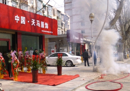 中國天馬服飾的有關(guān)領(lǐng)導(dǎo)王總、陳總到會祝賀。門前大紅色的地毯上,兩邊擺著花籃、鮮花、在燦爛的陽光下,格外喜慶。12時,王總代表總部宣讀了賀詞,在熱烈的掌聲中、王寶菊經(jīng)理做了簡短的開業(yè)致辭。