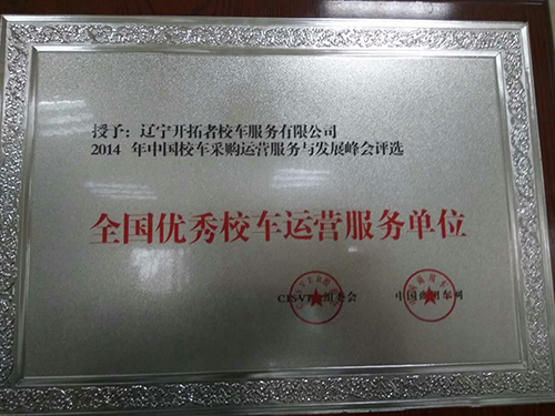 我公司通過專業(yè)化、規(guī)范化、制度化、集約化、科學(xué)化的校車運(yùn)營管理模式,被國家評為《全國優(yōu)秀校車運(yùn)營服務(wù)單位》,并由阿盟駐華大使加尼姆·希卜里頒發(fā)獎牌和獎杯。