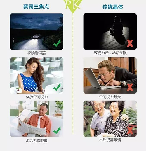 三焦點(diǎn)人工晶體,白內(nèi)障、老花眼、近視一站式解決。