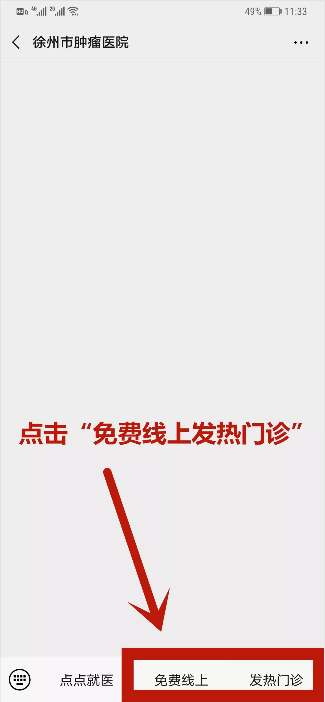 第二步:進(jìn)入公眾號(hào),點(diǎn)擊底部“免費(fèi)線上發(fā)熱門診”。