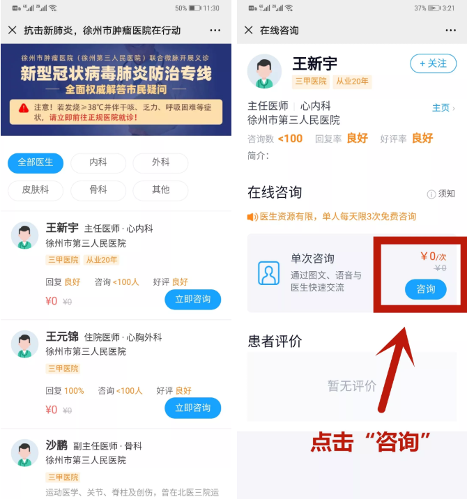 為貫徹落實(shí)國(guó)家和省市有關(guān)新型冠狀病毒感染的肺炎防治工作要求,保障人民群眾健康安全,緩解醫(yī)療資源緊張并降低社會(huì)焦慮,減少交叉感染,徐州市腫瘤醫(yī)院開放發(fā)熱門診在線咨詢服務(wù),為民眾提供免費(fèi)的網(wǎng)絡(luò)問(wèn)診。