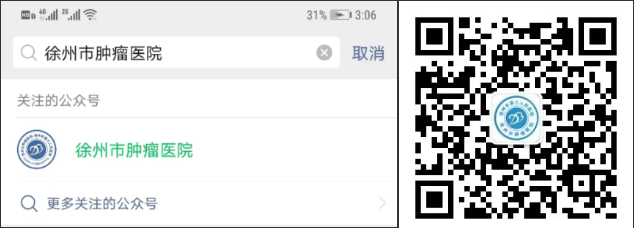 第一步:掃描二維碼,或微信搜索公眾號(hào)——徐州市腫瘤醫(yī)院,點(diǎn)擊進(jìn)入公眾號(hào)。