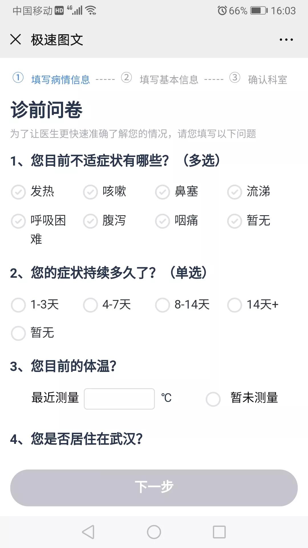 開(kāi)啟診前問(wèn)卷根據(jù)自己的具體情況