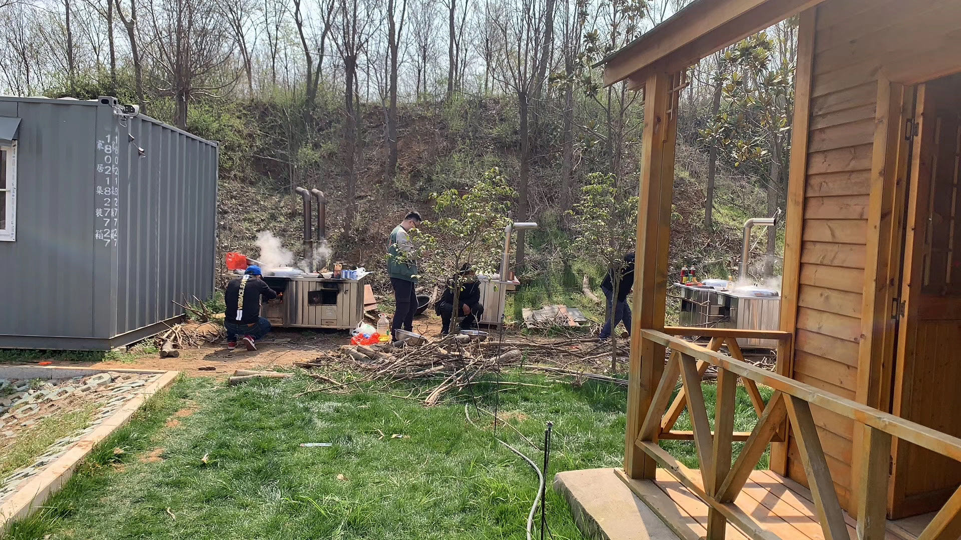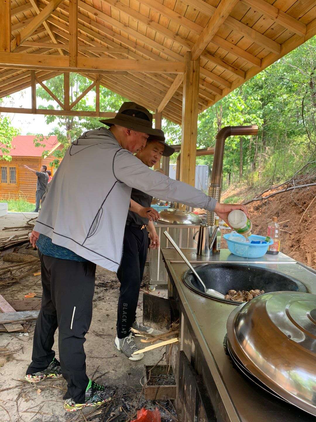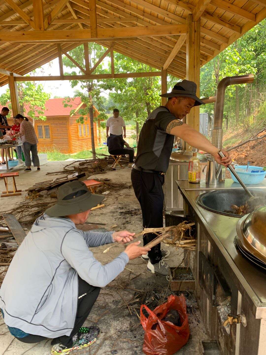 山莊內(nèi)有小木屋可訂餐,垂釣。