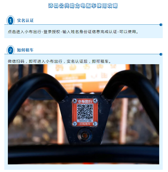 目前新投放的助力電瓶車采用“掃碼用車”的方式,市民通過點擊“小布出行”,掃描車鎖二維碼,點擊進入小布出行-登錄授權-輸入姓名身份證信息完成認證-可以使用,即可一鍵租車。行程結(jié)束時,把車推進停車點停車架,點擊“我要還車”即可完成還車。