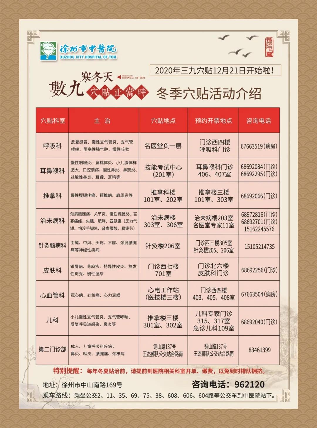 徐州市中醫(yī)院三九穴貼12月21日開貼!您預約了嗎?