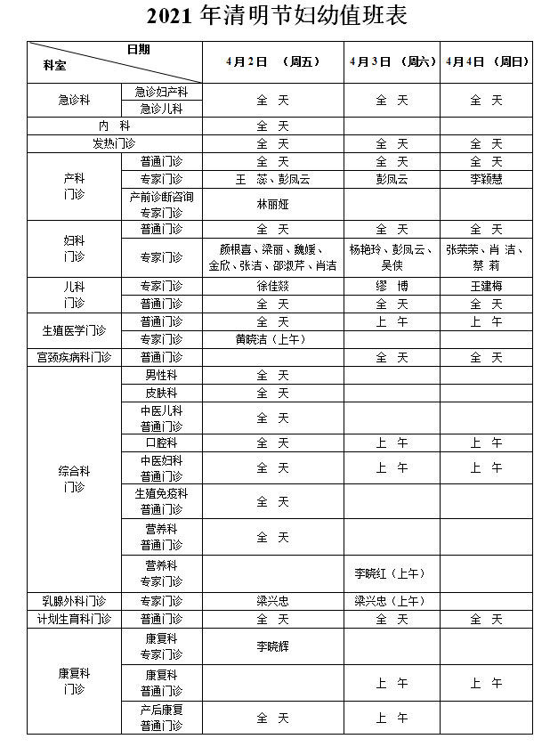 徐州市婦幼保健院:清明節(jié)期間如何就診,快看看專家坐診表吧