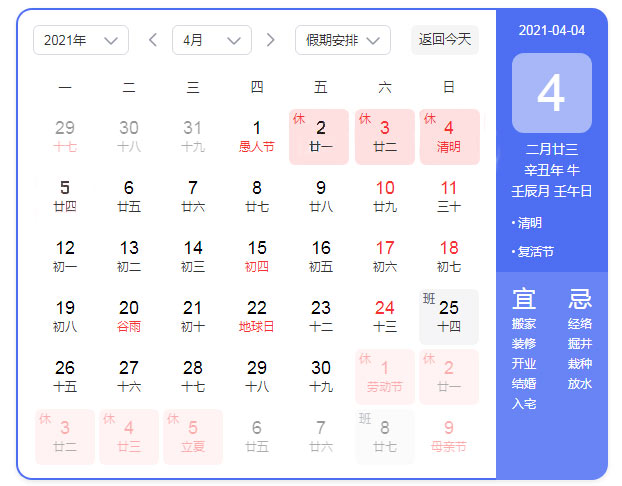 2021年清明節(jié)放假時間為