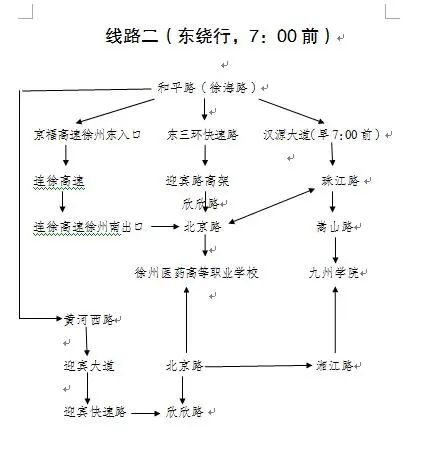 可從高速徐州東、徐州西等出入口上高速,經(jīng)高速公路至徐州南、漢王出入口下高速,經(jīng)北京路、珠江路至銅山新區(qū)。