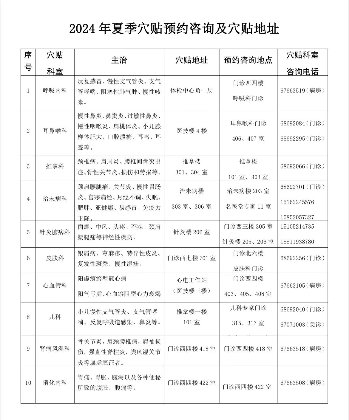 即日起,徐州市中醫(yī)院呼吸內(nèi)科、耳鼻喉科、兒科、推拿科、治未病科、針灸腦病科、皮膚科、心血管科、腎病風(fēng)濕科、消化內(nèi)科、中醫(yī)院第二門診部、第三門診部等科室,全面接受三伏貼預(yù)約。市民朋友可提前到相關(guān)科室進(jìn)行咨詢。