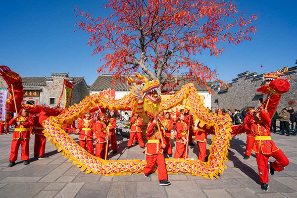 鑼鼓聲中,財神巡游、舞獅表演、小馬燈等民俗節(jié)目輪番上演;宴席之上,椏溪紅燒肉、顧隴羊肉鍋、慢城桂魚煲等高淳美食悉數(shù)亮相;顒蝇F(xiàn)場,還有本土?xí)覔]毫送春聯(lián),年貨大集上固城湖螃蟹、咸貨臘味、時蔬草莓等農(nóng)副產(chǎn)品琳瑯滿目,吸引游客爭相選購。