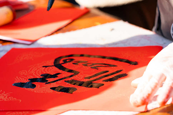 高淳本土?xí)覟橛慰蛯懘郝?lián)送“福”。丁劼攝