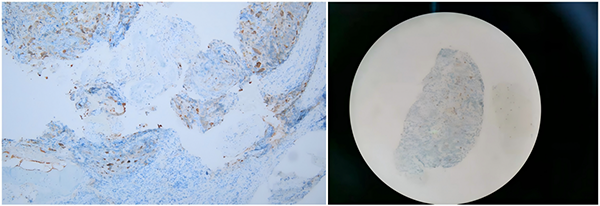 這位10歲患者在入院前2周突發(fā)眶部疼痛,家長發(fā)現(xiàn)其右側眶額部腫脹,至當地多家醫(yī)院就診,擬診惡性腫瘤,后經人推薦及網絡查詢,到徐醫(yī)附院眼科就診。影像特征表現(xiàn)為右側額骨蟲噬樣骨質破壞,邊緣銳利,顱底骨質破壞,潘榮海主任通過門診閱片及影像特征評估,診斷為眼眶LCH。該病是全身疾病在眼眶病中的表現(xiàn),臨床上少見,容易引起誤診,診斷比較復雜,病變可以侵襲顱內及全身多器官,危及患者生命。通過胸片及腹部超聲檢查,排除多系統(tǒng)疾病。本例術中發(fā)現(xiàn)骨質破壞與影像表現(xiàn)一致,顯微鏡下細心刮除硬腦膜表面暗紅色膠凍樣病變組織,避免腦脊液漏發(fā)生。術前腫瘤的定性定位診斷與手術操作具有挑戰(zhàn)性,潘榮海主任團隊術前對影像精準評估與診斷,設計最佳手術方案,順利完成手術,病理診斷與術前診斷完全相同,專業(yè)水準及診療服務獲得患方高度贊譽。