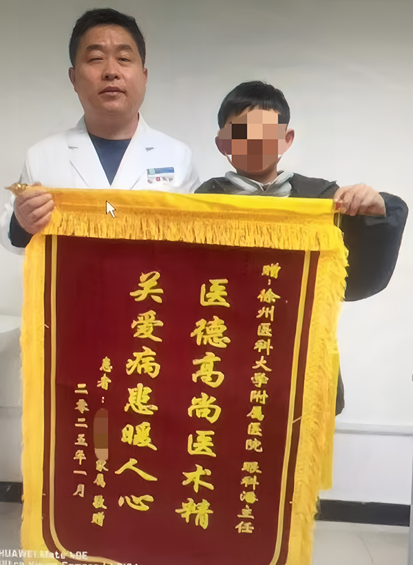 黃淮網(潘榮海)近日,徐州醫(yī)科大學附屬醫(yī)院眼科潘榮海主任團隊成功完成了一例罕見兒童眶顱溝通性腫瘤——眼眶朗格漢斯細胞組織細胞增生(Langerhans cell histioocytosis,LCH)的治療;純喝笃浼议L特地送來錦旗,代表全家向徐醫(yī)附院眼科眼腫瘤眼眶病團隊表達真摯感謝。