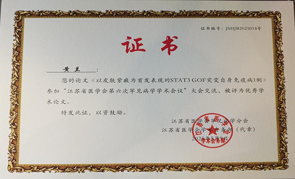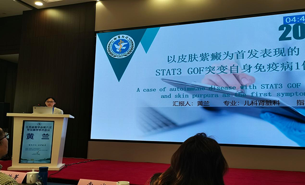 在青年學(xué)組會議暨優(yōu)秀論文評選交流會上,由徐醫(yī)附院兒科主任關(guān)鳳軍教授指導(dǎo)的2024級腎臟學(xué)專業(yè)碩士研究生黃蘭,憑借論文《以皮膚紫癜為首發(fā)表現(xiàn)的 STAT3 GOF 突變自身免疫病 1 例》從203篇高質(zhì)量投稿中嶄露頭角,成功入選“優(yōu)秀論文”并受邀進行口頭報告。該論文匯報了兒科收治的一例罕見病例,深度剖析了患兒從初診到確診的全過程,詳實記錄了臨床表現(xiàn)、診療思路及治療方案的動態(tài)優(yōu)化過程。面對以皮膚紫癜這一常見癥狀起病的患兒,關(guān)鳳軍主任帶領(lǐng)的腎臟風(fēng)濕免疫診療團隊突破慣性思維,結(jié)合患兒年齡特征與隱匿性系統(tǒng)損害表現(xiàn),迅速啟動基因檢測,精準(zhǔn)鎖定 STAT3 GOF 突變,彰顯了徐醫(yī)附院兒科對疾病異質(zhì)性的敏銳洞察力與精準(zhǔn)醫(yī)學(xué)實踐能力。點評專家對該論文給予高度贊譽,認(rèn)為該罕見病至今尚無特效藥物與標(biāo)準(zhǔn)化治療方案,徐州醫(yī)科大學(xué)附屬醫(yī)院兒科憑借敏銳的診斷能力與個性化治療策略,取得突破性臨床成效;純涸诮邮軉慰怪委熀螅(jīng)數(shù)月隨訪各項臨床指標(biāo)均恢復(fù)正常,充分印證了診療方案的科學(xué)性與有效性。此病例不僅凸顯了罕見病診療的復(fù)雜性與挑戰(zhàn)性,更為罕見病病例數(shù)據(jù)庫的建設(shè)提供了珍貴樣本,為后續(xù)臨床研究與學(xué)術(shù)探索積累了重要經(jīng)驗。