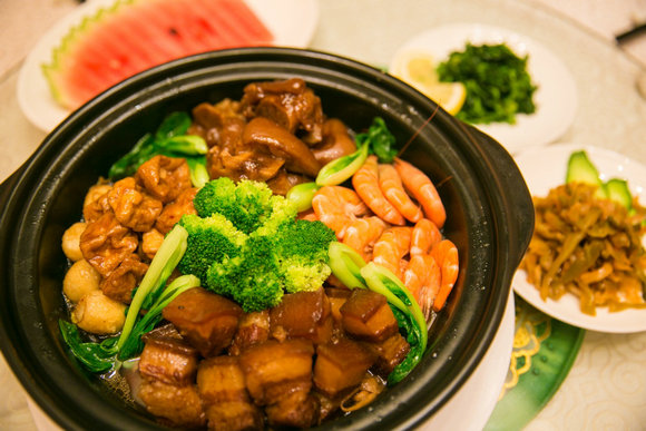 盆菜是影星酒店最近新推出的特色產(chǎn)品,一盆上來可能就愣住了——這分量,那是相當多。它食用方法獨特,從而為用餐增加了些許花樣樂趣。上桌后,食客將最上層喜愛的菜肴入碗,再用自己的筷子逐一享用,一層一層吃下去,味道越發(fā)香濃,直至享受到底層湯汁。對于專門提供海鮮,尤其擅長海鮮制作的影星酒店,更是融入了多種海鮮,加入鮑魚等高檔海味,盆菜的品質(zhì)也被提升到更高層次。五花八門的菜式搭配,加上大膽的創(chuàng)新,每種食物的香味都出于自然,又似乎交融在一起,讓人吃得舒舒服服。
