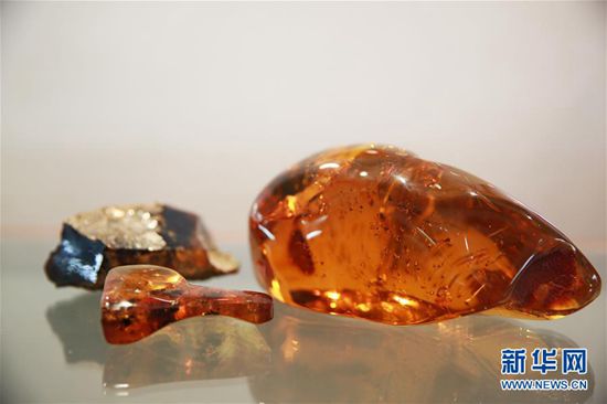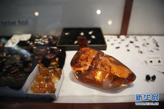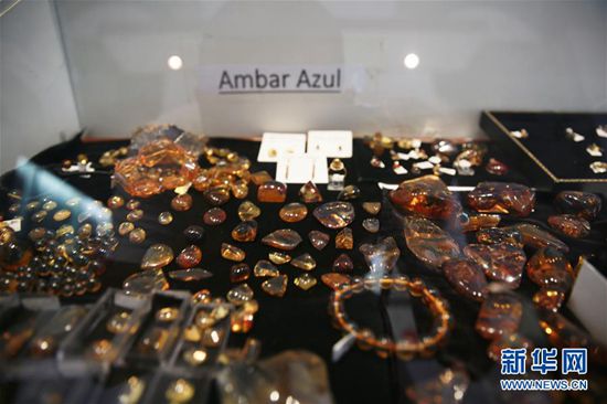 這是5月3日在多米尼加首都圣多明各的琥珀博物館拍攝的琥珀和藍(lán)珀。加勒比海島國(guó)多米尼加盛產(chǎn)琥珀,同時(shí)也是世界珠寶極品——藍(lán)珀的主產(chǎn)地。藍(lán)珀在陽(yáng)光下呈現(xiàn)出夢(mèng)幻的藍(lán)色,是琥珀中最珍貴的品種,被珠寶業(yè)界公認(rèn)為“琥珀之王”。多米尼加琥珀博物館位于圣多明各市中心的哥倫布廣場(chǎng)旁,這里除了展示各式各樣的琥珀外,還有關(guān)于琥珀歷史和琥珀知識(shí)的展覽。新華社記者淡航攝