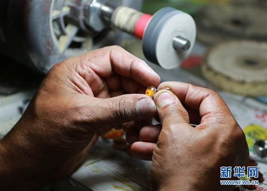 5月2日,在多米尼加首都圣多明各的琥珀博物館,一名工人在制作琥珀耳環(huán)。加勒比海島國(guó)多米尼加盛產(chǎn)琥珀,同時(shí)也是世界珠寶極品——藍(lán)珀的主產(chǎn)地。藍(lán)珀在陽(yáng)光下呈現(xiàn)出夢(mèng)幻的藍(lán)色,是琥珀中最珍貴的品種,被珠寶業(yè)界公認(rèn)為“琥珀之王”。多米尼加琥珀博物館位于圣多明各市中心的哥倫布廣場(chǎng)旁,這里除了展示各式各樣的琥珀外,還有關(guān)于琥珀歷史和琥珀知識(shí)的展覽。新華社記者淡航攝