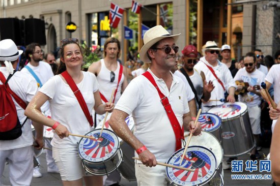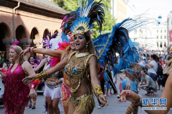6月2日,在挪威首都奧斯陸,表演者參加狂歡節(jié)游行。當(dāng)日,奧斯陸舉行一年一度的狂歡節(jié)游行。 新華社記者梁有昶攝