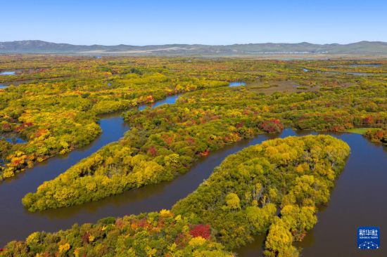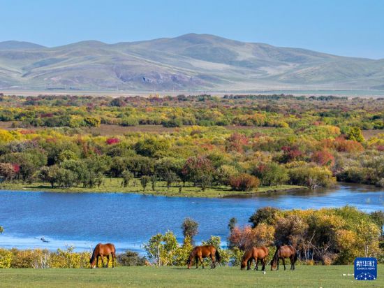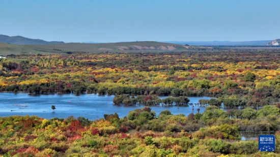 時(shí)下, 內(nèi)蒙古額爾古納濕地迎來秋日盛景,多彩的灌木叢點(diǎn)綴其間,蜿蜒的河流如藍(lán)絲帶般靜靜流淌,宛若大自然打翻的調(diào)色盤。