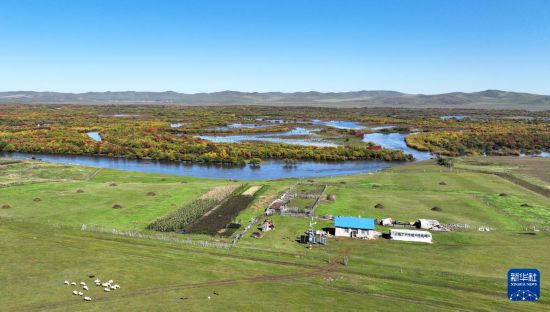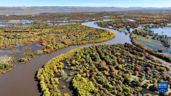 這是9月15日在內(nèi)蒙古呼倫貝爾市額爾古納市拍攝的濕地風(fēng)光(無(wú)人機(jī)照片)。