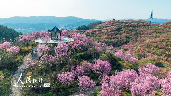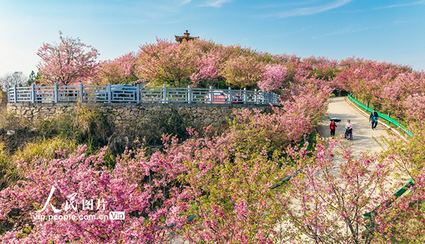 2026年3月21日,湖北省黃岡市英山縣河?xùn)|櫻花園櫻花盛放,如云似霞。游客徜徉花海,共赴春日之約。王江攝(人民圖片網(wǎng))