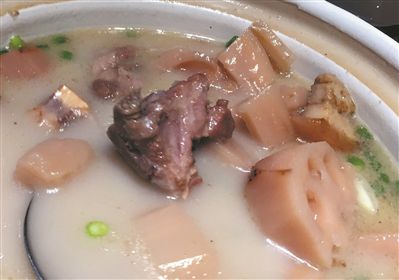 做法:豬手洗凈斬塊,連同洗凈的雞腳一齊放進沸水中焯一下,撈出沖洗干凈血沫;香菇用溫水泡發(fā)后,去除硬梗,洗凈;蓮藕、鐵棍山藥分別削皮洗凈,滾刀切厚塊,連同洗凈的栗子仁一齊放入砂鍋內(nèi),加入清水3000毫升,用武火煮沸后改用文火熬2小時,調(diào)味后即可食用。