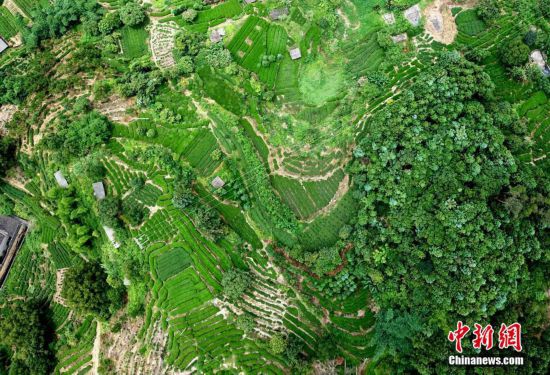 6月中旬,空中鳥(niǎo)瞰福建省寧德市霍童鎮(zhèn)美麗茶山。中新社記者 王東明 攝