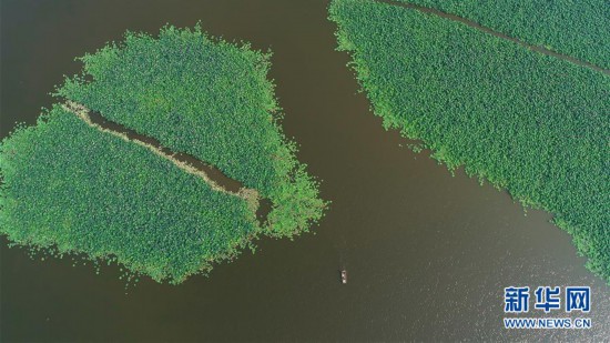 7月12日,游客在河北省灤南縣北河公園內(nèi)乘船觀賞荷花(無人機拍攝)。盛夏時節(jié),河北省灤南縣北河公園里荷花競相綻放,進入最佳觀賞期,吸引了眾多游客和市民前來觀賞。 新華社記者 牟宇 攝