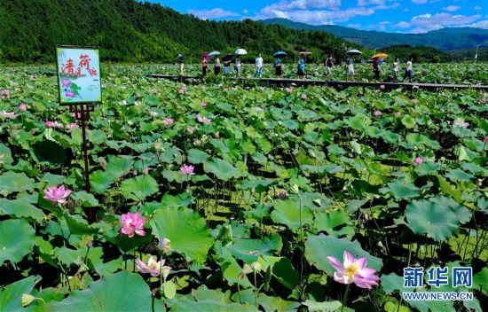 7月19日,游客在武夷山市五夫鎮(zhèn)“清風(fēng)荷塘”主題公園游覽。 近年來(lái),福建省武夷山市五夫鎮(zhèn)把發(fā)展特色種植和傳統(tǒng)文化結(jié)合起來(lái),通過(guò)大面積種植荷花,打造“清風(fēng)荷塘”主題公園,促進(jìn)了鄉(xiāng)村旅游的發(fā)展。 新華社記者 張國(guó)俊攝
